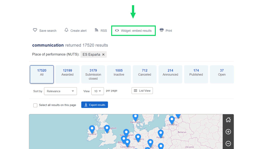 Public procurement search result widget